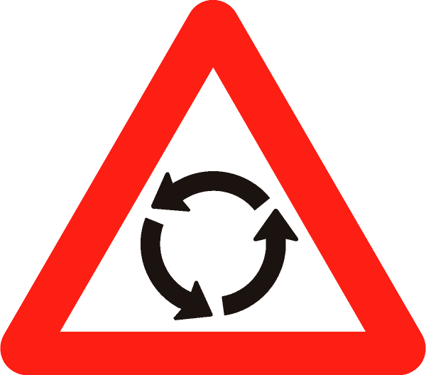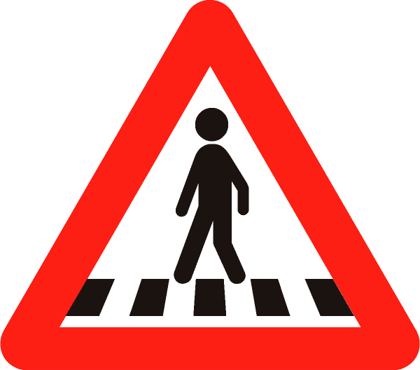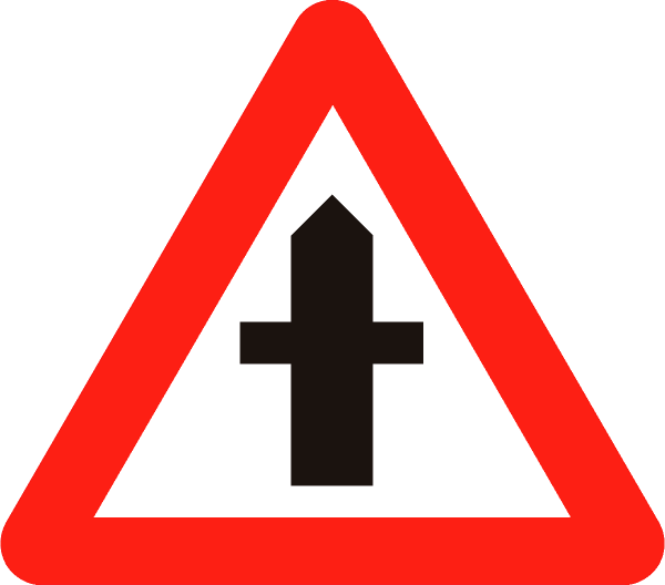 Angiver, at den krydsende færdsel har ubetinget vigepligt, men ofte også dårlig oversigt, og at man derfor skal køre med skærpet opmærksomhed mod færdsel i krydset.