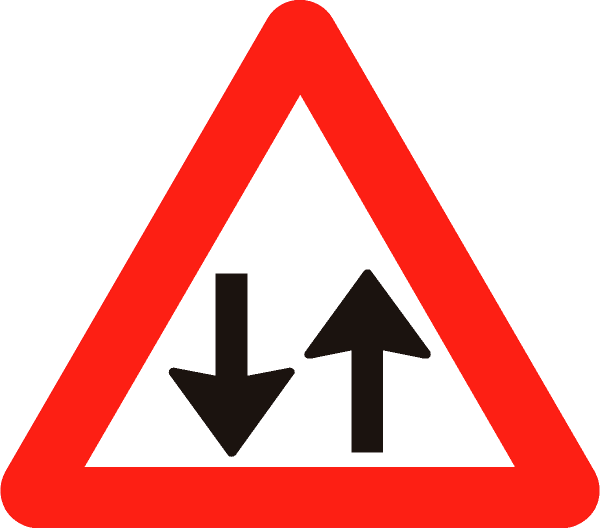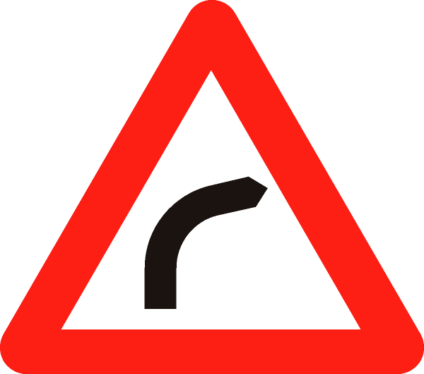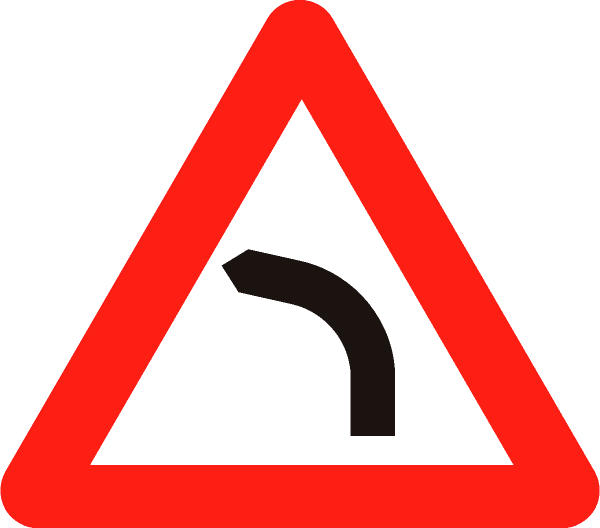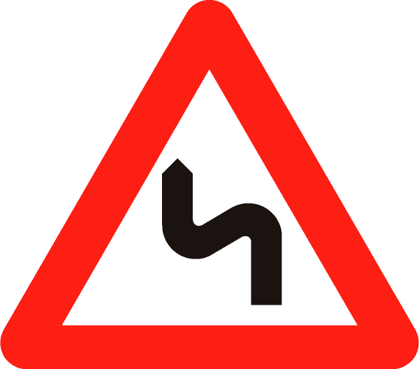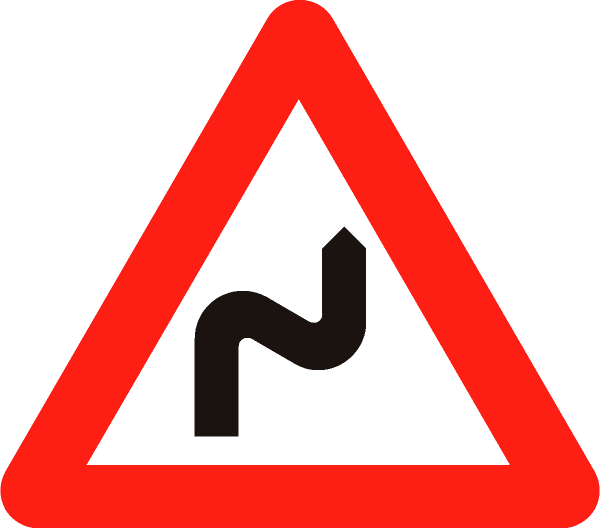 Advarer om henholdsvis farlige højresving og farlige venstresvingsamt flere farlige sving.