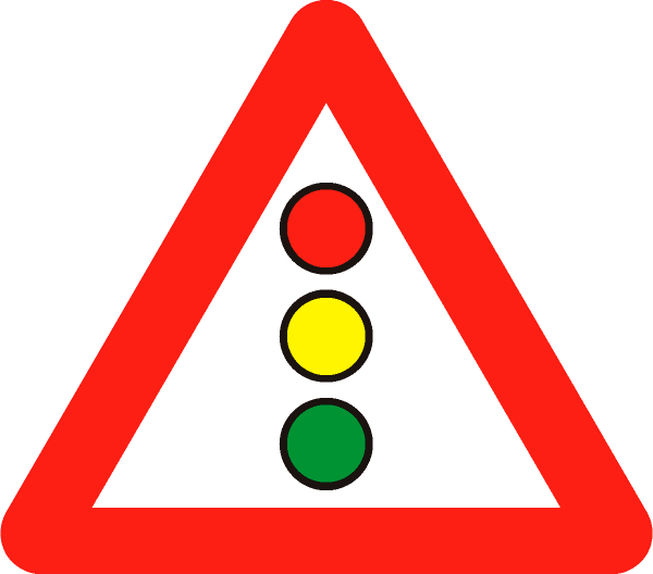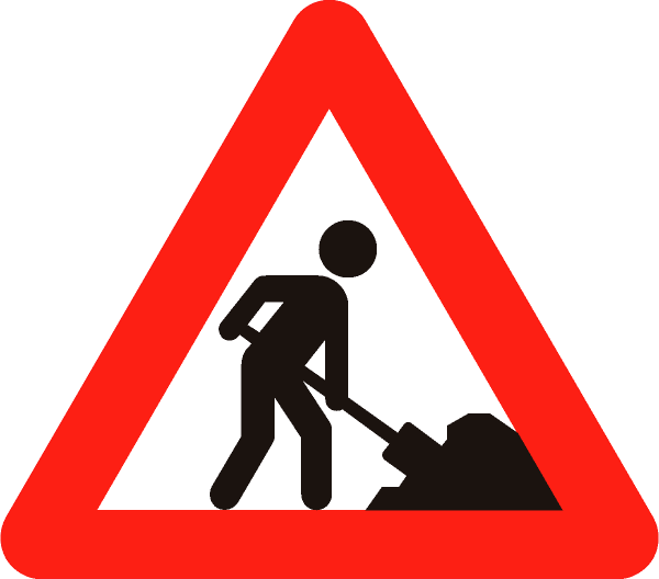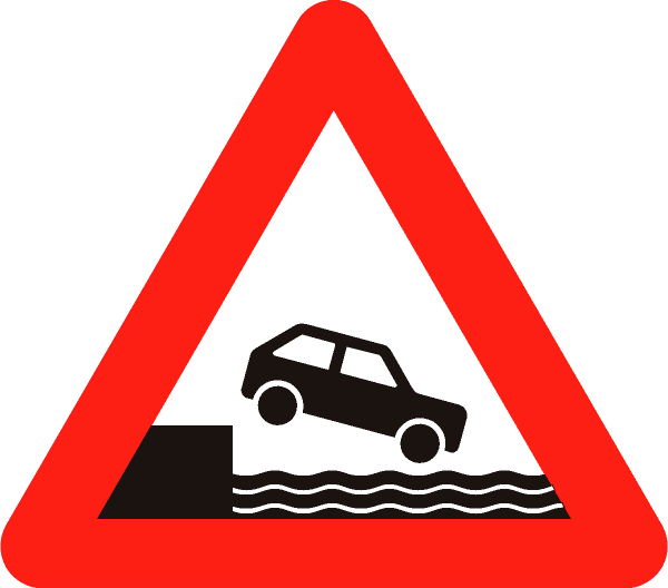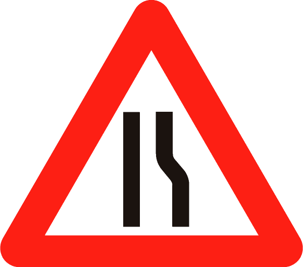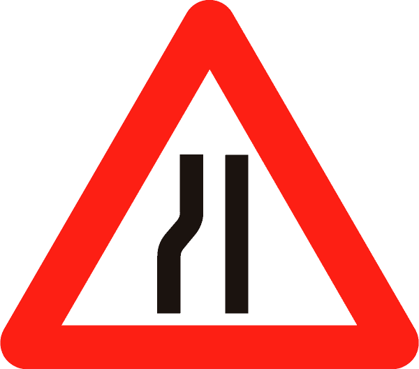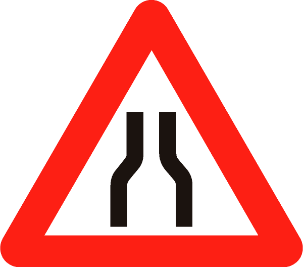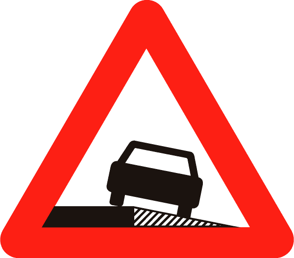 Advarer mod kørsel ud i rabatten. Årsagen kan angives på undertavle.