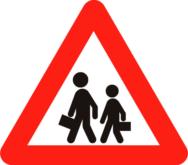 Advarer om børn i nærheden af skoler, fritidshjem, legepladser og lignende steder.