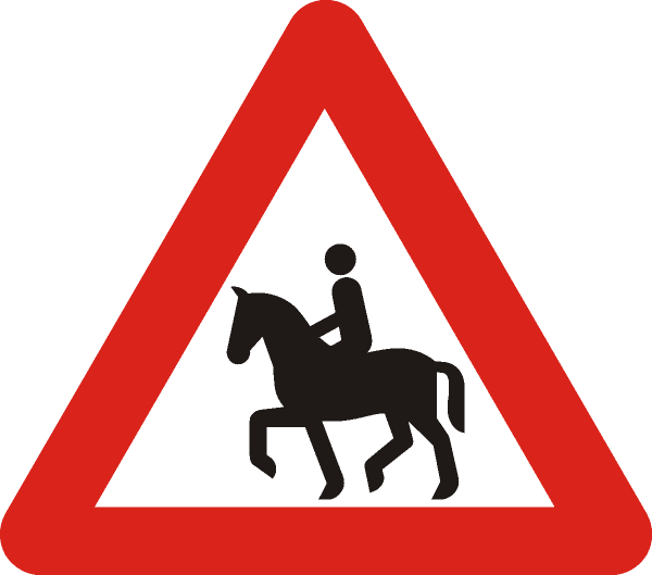 Advarer om ryttere på kørebanen især på steder med nedsat oversigt.