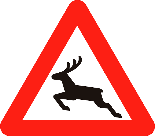 Angiver særlig risiko for dyrevildt krydser kørebanen.