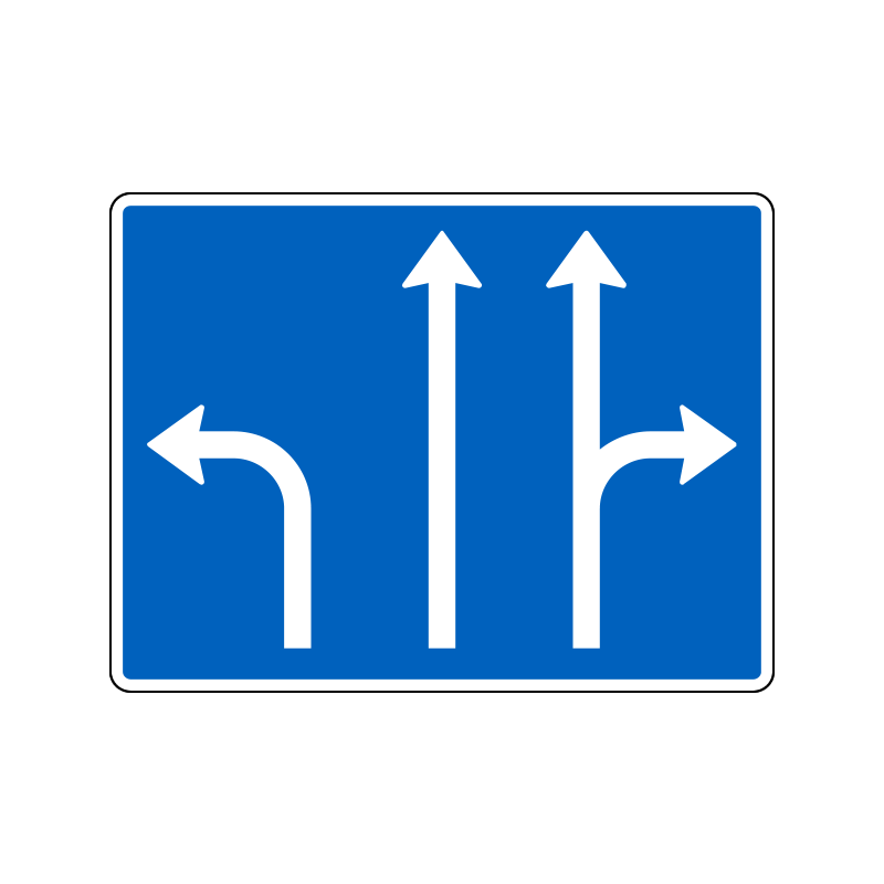 Angiver de kørselsretninger i krydset, som vognbanerne er beregnet til.