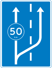 Angiver, at man skal køre ind på krybesporet, hvis man kører langsommere end den hastighed, der er anført på tavlen, og at man skal forlade krybesporet igen, hvis man kører hurtigere end den anførte hastighed.
