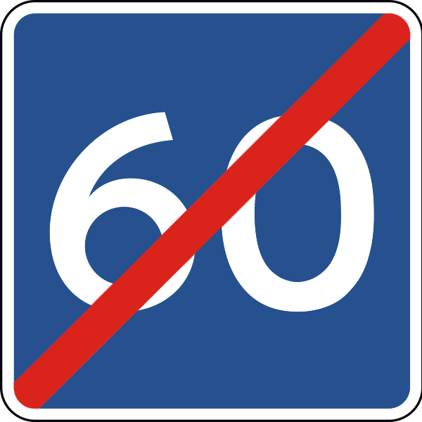 Angiver, at vejen ikke er egnet til kørsel med højere hastighed end den angivne. Den gældende strækning kan eventuelt være anført på undertavle.