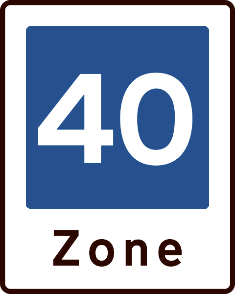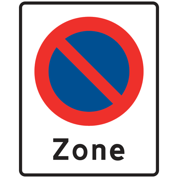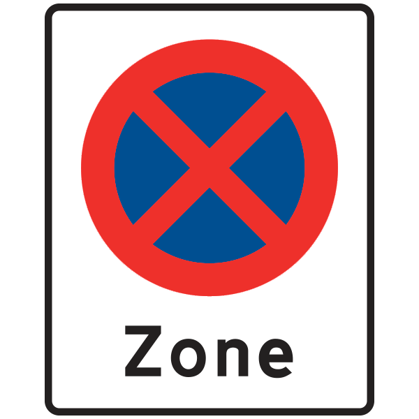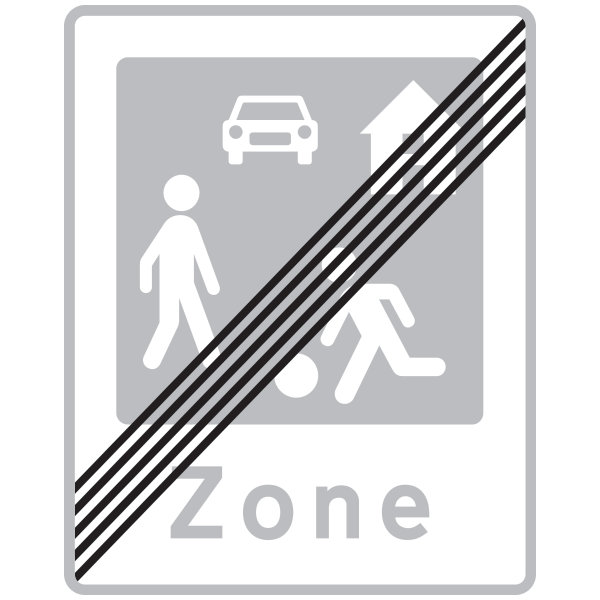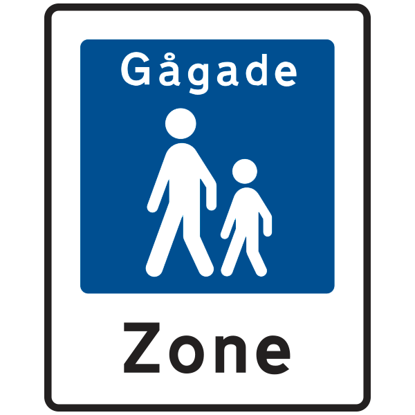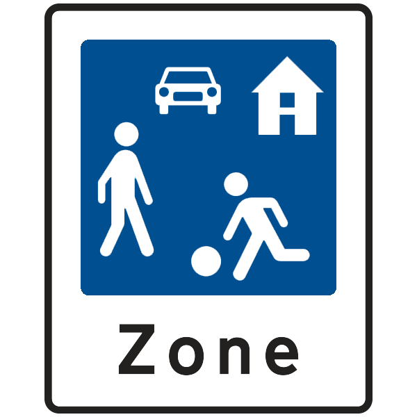 Angiver et område, hvor særlige færdselsregler gælder. En vis kørsel kan tillades vedundertavle. Kørsel i området må kun ske med meget lav hastighed (normalt under 15 km/t). Parkering af bilen må ikke ske uden for afmærkede pladser.