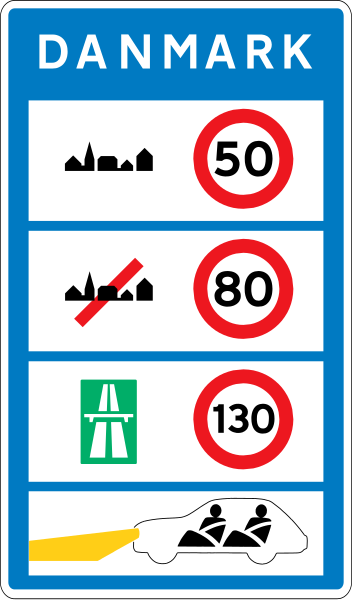 Tavlen angiver de generelle hastighedsbegrænsninger, som gælder i landet.